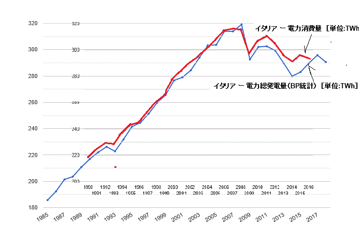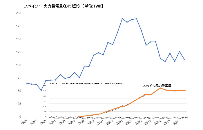 スペイン火力発電設備推移 |