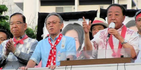 立憲民主、共産、社民の党首級の幹部が14日、参院選沖縄選挙区(改選数1)に立候補した野党系無所属の新顔=立憲・社民推薦=の応援演説でそろい踏みした。立憲の野田佳彦代表が今回の参院選の遊説で共産幹部と並び立つのは初めて。沖縄では米軍普天間飛行場(宜野湾市)の名護市辺野古への移設に反対する「オール沖縄」の枠組みがあり、自民新顔=公明推薦=との対決姿勢を強めた。