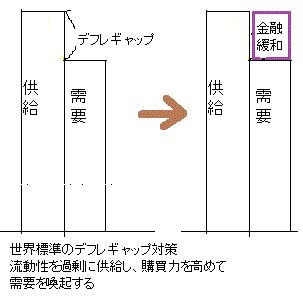 これではいかん、とのことで、2012年に自民党が政権を取り戻してからは、アベノミクスが始まった。これは、需要は簡単には増えないので、デフレギャップを金融緩和によって解消し、ギャップを埋めようという試みだった。