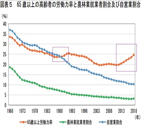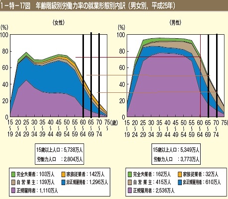 ![]() だいたいにおいて、男は家庭では役立たずなので、高齢になって、奥さんから嫌がられて、家に居づらくなって働いている人が多く、女性は逆に、家でやることが多いので、高齢になると、家に戻る人が多い。 おおざっぱにいって、60歳代前半男の就業率は8割、後半が6割、70歳前半が4割であり、女性はだいたいその半分、と考えてよい。(70代後半になると、そもそも統計がほとんどない)。 上記サイトの数字は、要はこれらすべてを平均したものなのである。年齢で就業率が相当異なるので、この平均はほぼ無意味だろう。 ついでに言えば、さぞ最近、高齢者の就業率が高くなってきたように言われるが、実はそれは、昭和の頃の方が高かったのだ。これは、昭和の頃は、自営業者が多かったためである。 ![]() 要するに、高齢者は実は昔から、よく働いていたのだ(令和6年5月2日当ミニコラム参照)。 ●平均とは もともと平均が意味を持つのは、平均値≒中央値≒最頻値となる場合である。たとえば、試験の得点などがそれに当たる。通常試験は、母集団の学力を測るために行われるので、母集団が正規分布を作るようなレベルの問題が出される。この場合、母集団の能力と問題レベルに応じた平均点(通常はだいたい60点が目途にされる)が出るが、それは母集団全体の学力をよく示していると言える。同じ問題で、平均点が低い母集団は逆のそれと比較して、学力が低い、と認定できる。 よく引き合いに出されるように、年収や資産は平均を出す意味がない。両者のだいたい以下のようなカーブとなるから、前者の場合は中央値や最頻値が意味を持つし、後者の場合、3つの指標はいずれも無意味となる。 ![]() ![]() 高齢者の就業率の場合、下図のように、右肩下がりのカーブになるので、そもそも80%から20%以下へと幅広い年齢層で就業率が低下していくことの平均を出す意味合いがないことが理解できるだろう。 ![]() 引用記事を、高齢者の就業実態を知らない人が読めば、「高齢者は4割が働いているんだ=6割は働いていない」という多大な誤解を招くだろう。それは確かに正しくはあるのだが、世の実態はそれではつかめないのである。 | |||