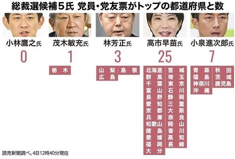 だが、党員たちの意見は違っていた。一回目の投票で、高市119票、小泉80票と圧倒的な差があった。また、大半の都道府県で高市氏は党員票がトップになっている。 ![]() 麻生さんの活躍もあっただろうが、結局のところ、議員投票前に党員投票のこの結果を見て、国会議員らはビビったのだろう。これだけの民意を無視して、小泉に投票するわけにはいかない、と。 基本的に、党員票と議員票はこれまでにおいても、一致しないことが多かった。つまり、国民(党員)に人気がある人と、仲間(国会議員)に人気がある人に分かれる。それには相応の理由がある。 私は、議員票は怪しいと思う。つまり彼らの投票理由は所詮は、国民のために働いてもらうというよりは、自分のために(自分の当選に有利なように)働いてもらう人を選び勝ちになる、から。つまり議員票は必ずしも民意を繁栄しているとは言えない(無論、民意の結果、議員になれたわけではあるが、その後の保身要素がどうしても働く)。 今回の総裁選は最終的に、小泉か高市か、ということになったが、どちらが総裁・首相になった方が自民党議員のための利益が高いかと言えば、間違いなく小泉だろう。 それは現在の自民党議員の主流が、安倍政権時代よりもかなり左に寄っているから。 小泉氏は党内最左派であるが、実はカラーがない。したがって若いこともあり、操ることが容易である。見栄えも声もいいから、選挙応援にもうってつけ。つまり、議員レベルからすれば、御輿に乗せるにはうってつけ。 対して高市氏は、カラーが強すぎる。一般議員にとっては、御輿に担ぎにくい。右寄りカラーだから、現在の自民党議員の主流からは扱いづらい。 党員レベルではまったく異なる判断になる。自民党党員になった人は、将来の日本を真剣に心配している人が多い。要するに彼ら党員の投票は、昔の制限選挙であり、より高度な民意を示していると考えられる。したがって、本当に日本の舵取りにふさわしいひとを選ぼうとする。その点、右寄りの高市氏なら心配ない。こうした判断が、高市氏への高い党員支持となっている。 <あるべき首相とあらまほしき首相> そもそも自民党が凋落し始めたのは、党全体が左傾化したから。具体的には、菅政権がカーボンニュートラルなんぞを打ち出したから。 菅→岸田とニュートラルな政権が続き、本来であれば、昨年にも高市政権が誕生すべきだった。 昨年の総裁選では、周知のとおり、第一回投票では、高市>石破だった。しかしながら、議員票では小泉氏が75票でトップだった(高市72票 石破46票)。高市、石破両人には、党員には人気があるが、議員からはそうでもないという共通点があった。つまり二人はもともとバッティングしていた。党員からの評価の優劣の差はなかったのだ。 そのために、最後には安全弁が働いた。私たちの分野でいえば、難しい手術に果敢に挑戦するが、結果が今一つ不安な術者か、無難な手術しかしないで、一定の安心感がある術者か、を選ぶことになり、後者が選ばれた。 しかしながら、議員レベルからすれば、安全弁を選んだのは失敗だった。つまり、高市以上に能力があるのかないのかわからない術者(神谷宗幣)が難しい手術に挑戦をし始めたために、そうした術者を望んだ患者が、実績はあるが、安全な手術しか手がけない術者を見捨てたのだ。 今回はバッティングしている石破がいないので、党員たちが示した流れからすれば、高市氏が総裁になるのは、当然のことであり、。さすがに国会議員らもその流れには、抗えなかったのだ。 いずれにしても、現在は、必要とされる医師は、安全な患者しか手術をしない術者ではなく、ある程度のリスクをものともせずに果敢に挑戦していく術者であることは、間違いない。 そうした意味において、高市氏はあるべき首相になり得る人だった。むかし古文の授業で、”べし”の使い方の種類をならったが、ここでの”べし”はmustである。 その点、小泉氏は、(特に国会議員にとって)あらまほしき首相だった。want toである。ただそれは、(国民にとっては)must notでもあった。国会議員はその雰囲気を敏感に嗅ぎ取り、今回の結果となったのであろう。 | |