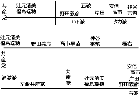 これまでの日本では、与党と野党で政策が真逆であった。たとえばエネルギー政策では、原発をどこまで認めるかにおいて、自民党v.s.(公明党+野党)で政策は真逆だった。安全保障もほぼ同様。 こうした状況において、安倍政権以降,自民党が強かったのは、公明党が党内野党の役割を果たし、特に安倍政権にある程度のブレーキをかけることで、政権の健全性が保たれていたためである。さらに、公明党があるおかげで、野党に出番がなかったせいもある。たとえば立民は枝野代表時代に、共産党・れいわ・社民との共闘に走ってしまって左傾化し、安倍政権独走を許した。当時リベラルは、左傾化した立民にも行けずに、やむなく安倍自民党を支持した側面も強かった。 ![]() だが菅政権以降、自民党が左傾化し始めた。決定的要因だったのが、菅首相が2050年カーボンニュートラルを打ち出したことで、仲の良い小泉進次郎に唆された上でのことだった。こうなると、岩盤保守層は、投票先を失う。 無論、保守の安倍氏も、エネルギー政策ではやや左寄りのスタンスだったが、実は安倍氏は2022年初頭から原子力の活用、エネルギーの安定供給を目指す議員連盟、勉強会などに出席しており、ある自民党の衆議院議員によれば、そうした会合で、安倍氏はエネルギー・原子力問題について「やり残した」、と感想を述べたという(安倍政権でも動かせなかったエネルギー改革 – NPO法人 国際環境経済研究所)。 つまり残念ながら、菅(すが)首相が安倍氏の真意を理解できず、エネルギー政策で暴走してしまったことが、今日の自民党凋落の始まりだったのである。 その後、岸田、石破とニュートラルな政権が続き、さらには維新や国民民主のようなリベラル~保守的な政党が育ったために、やむなく自民に走っていたリベラル~保守層が、こうした政党支持を始めた。そして、自民党よりも右寄りの保守である参政党が出現したために、岩盤保守層が参政党に移っていった(特に若い層)。こうした結果が、今回の参院選であった。 さらに、自民党全体の左傾化とともに、与野党の政策の区別があいまいになってきた。つまり参政党は無論のこと、自民党を回り込んで右に走る政党が目立ち始めた。 たとえばエネルギー政策では、国民民主がいち早く、原子炉増設を主張し始めた。また国防においては、参政党が、一部議員とはいえ、核武装にも言及した。数は少ないが、保守党も同様である。また維新は医療費削減を唱え、いずれも自民党がやりたくてもできなかった政策を主張し始めた。 また、所得格差是正問題については、これまでは与党=給付金、野党=減税と、唯一、与野党できれいに政策が分かれていた問題であったが、給付付き税額控除の点で、こちらは何と、自公と立民が同じような立場に立った。 もともと積極財政か緊縮財政かにおいて、与野党がバラバラだった。そもそも自民党内でも両者がいたし、立民・維新は後者、国民民主は前者、と野党内でも分かれる重要政策だった。そこにおいて、与党の緊縮財政派と立民が妥協をしたと言える。 ここまでくると、もはや、政策においては、与野党の区別がなくなってくる。かといってパーシャル連合では、政策ごとにいちいち与野党が協議をせざるを得ないので、効率が悪い。 こうして、与党が少数になったことと相まって、次の政権では、連立が必至となっているわけである。 そして、誰が自民党総裁になるかで、この組み合わせは大きく変わることになるだろう。 ありていに言えば、次期総裁選は、高市早苗v.s.その他であり、高市氏以外なら誰がなっても同じだが、高市氏が首相になれば、大きな期待ができよう。ありていに言えば、参政党の扱いが焦点となる。 当面はパーシャル連合で乗り切り、次の衆院選で参政党がそれなりの結果を出せば、もともとのその高い支持率も無視できなくなり、首相が高市早苗であれば、連立を組むだろう(高市氏は参政党との政策協議に前向きとの報道がなされた(高市氏「力合わせるの当たり前」参政党と保守党との政策協議に前向き [自民党総裁選 自由民主党総裁選挙]:朝日新聞)。連立する政党のことは明らかにしていないので、そこまでいくつもりかどうかはわからないが、同党と連立を組むことは、高市氏にしかできないだろう)。 その際、おそらく維新も連立に入るとは思う。異端児となる公明党は、野党になれば自滅するのはわかりきっているので、やむを得ず与党に残り、自民・参政・維新・公明の強力な連立政権ができるだろう。国民民主まで入れば、鬼に金棒で、現参議院で見ると、与党が163議席を持つことになる。 こうなると、おそらくは安倍政権の再来となり、与党は選挙で負けなくなり、日本は保守王国となり、トランプ政権にも合致する国になるだろう。 原発は推進され、外国人の扱いや再エネには一定の枠がはめられることだろう。EVへの補助金も減額されるだろう。そもそも実現不可能な、2050年カーボン