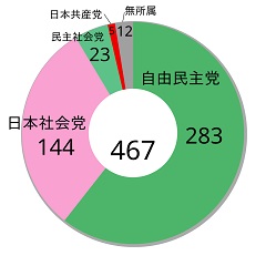 小沢一郎の暗躍で、それは実現した。細川連立内閣である。共産党を除く野党が細川氏を首班指名したことで、実現した。 しかしながらそれは、小沢一郎がいたがゆえのウルトラCであり、各党の政策の違いがあまりにも多く、細川氏自身も、長くは続かないだろうと思っていたという(多くが短命に終わった連立政権、「理念共有が命綱」…細川元首相「ビジョン示す必要がある」 : 読売新聞)。実際、8か月で瓦解した。その原因は、社会党だった。 それは、社会党以外の政党sは中道~リベラルであったのに対して、腐っても鯛、最大野党だった社会党がマルクス=レーニン主義の残滓を引きずっていたせいだった。 さて基本的に戦後の政治勢力は、自民党を中心とした右側(保守)勢力、中道(リベラル)勢力、左派勢力の3つに分けられる。’55年体制以降の日本政界は、この3勢力のせめぎあいだった。 保守と中道ならば連立を組めるが、サヨクは対象外(左翼同士なら組める)ということを歴史は示している。安住氏はこうした政治史を知らぬようだ。 ●保革対決の時代(’60年代) ’60年代には社共共闘が言われた。共産党が、’60年の六全協で暴力革命路線を捨てたために、社共共闘の素地ができた。この頃はまだ、マルクス=レーニン主義の勢いがあり、かつ、民社党はまだできたばかりで不安定だった。これに対して、共産党はこの時期、順調に議席数を伸ばしていた。世間には、’60年の三井三池闘争の総資本対総労働のイメージが残っており、中道勢力は必要度が低かった。 たとえば、1963年の総選挙結果は、以下のようになっている。 ![]() 1963年11月総選挙結果 この時期から10年ほど(だいたい昭和40年代)、地方自治体には、革新首長が多数現れ(典型的なのが美濃部都知事)、革新ブームのように言われたが、所詮は自民党の岩盤が強く、その後のマルクス=レーニン主義の退潮もあって、’70年代後半にもなると、革新ブームはしぼんでいった。’79年に都知事が革新の美濃部から保守の鈴木俊一に変わったのが、まさにブームの終焉を完璧に示している。 ’60年代は革新勢力の黄金時代であったが、同時に、マルクス=レーニン主義の衰退時期でもあった。欧州がサヨクがマルクス=レーニン主義を見限って、中道~リベラル勢力が一般的になるに伴い、日本にもそうした勢力が根付き始めた。社会党がマルクス=レーニン主義を捨てなかった(形式上、社会党は’85年にマルクスレーニン主義と決別した)ために、中道になりきれなかったためでもある。 ●多党化、中道政治の時代(’70年代) ’70年代は、革新勢力退潮に伴う、多党化の時代の始まりであり、かつ、自民党が弱った時期でもあった。昭和34年生まれの私は、この時期から記憶がある。選挙と言えば、自民、社会、公明、民社、共産で、中選挙区制で、それぞれの勢力にしたがって、各選挙区の当選者が生まれていた。 注目すべきは、1976年の総選挙で自民党がついに過半数割れをしたことだった。 ![]() 1976年12月衆議院選結果 この後は、ほぼ与野党伯仲状態となり、つまりは、野党も結集すれば、場合によっては連立政権を組んで、非自民政権を作ることが可能になってきた(周知のごとく、それは、1993年に実現する)。あるいは、弱った自民党と連立を組んで政権を担うことも可能になった。 そのために当時は、社交民路線、自公民路線などが模索されたが、連立などには至らず、結局は自民党単独で何とか過半数ぎりぎりでやっていた。ただいずれにせよ、政治の中心軸が、自民党一本の右派勢力から、かなり左寄りにシフトしたことは確かである。 ●右側回帰の時代(’80年代)→左側への時代(’90年代) ’80年代になると、米国レーガン大統領、英国サッチャー首相、日本は中曽根首相の登場で、世界中が大きく面舵を取ることになった。英国は左寄り政策が長年続いたことで、英国病に悩まされ、米国はソ連との軍拡競争で強い政権が望まれ(その前の民主党のカーター政権が弱い政権で一期で終わった)、日本もまた、中道政治の毒にまみれており、やはり保守、タカ派が正しい、と世界が理解するようになったのだ。 中曽根内閣は5回の国政選挙を無難に乗り切り(そのうち1回は衆参ダブル選挙で圧勝)、またこの時代の日本は、「ジャパン・アズ・ナンバーワン」の時代であり、貿易摩擦も起こり、いずれにしても、戦後経済の頂点の時代でもあった。 しかしながら、’90年代に入ると、日本経済は成長が止まり、メンテナンスの時代となった。同時に、消費税導入やリクルート問題などがあり、自民党は冬の時代に入った。’93年にはついに、政権を野党に奪われ、その当時には自民党でも最左翼である河野洋平が総裁になり、かの悪名高き河野談話の発表となった。 ’94年には自社政権成立というウルトラCが生まれ、自民党は天敵の社会党と組まなければ政権を得られない状態であり、またちょうど村山内閣時代に、阪神大震災、オウム真理教事件が起こり、政治が左に傾くと