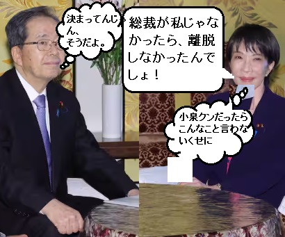 当時、自民党内が民営化賛成派、反対派に割れていたので、漁夫の利で、野党(民主党)が有利だと言われていた。だから自民党内には、(郵政民営化に反対はしないまでも)解散総選挙に反対の人も多くいた。分裂選挙で大敗するとの予想から「やけっぱち解散」などとも揶揄された。当時の岡田克也民主党代表は、こういう状況だから勝てる、と読んだそうだ。 だが実際は、言うまでもなく、総選挙史上に残るような、自民党の大勝利だった。 多くの人にとってもそうであろうが、人にはやはり、勝負所、が時々、来る。たとえば私事であるが、私の場合、立教大学 高市さんもまた、3度目の挑戦で、自民党総裁となった。本来なら、これで総理のイスは約束されたも同然だったのだが、彼女は何と、さらなる挑戦をした。つまり、公明党を連立から追い出す作戦である。 無論政治家だから、本音は言わない。公明党は少数政党だから、対等に交渉を進めても、どうしても自民党が悪者になってしまう。したがって彼女は、公明党側から連立を離脱する、と言わしめることにした。仕掛けた。疑惑の男、萩生田光一を幹事長代行にしたのである。 ”代行”がミソだと思う。さすがに、その能力はあるにしても、現時点で幹事長は無理だ。だから代行にしておく。しかし、疑惑の男をかなり重要なポストに座らせたわけだから、おそらくは公明党が黙ってはいまい。必ず、仕掛けてくる。 彼女の読みはあたり、公明党側から文句たらたら言ってきた。しめた! こうして、公明党側から連立離脱を言わせることに成功した。 高市わなに引っかかった公明党が馬鹿だった。 別れ話のようなネガティブな問題は、は、だいたいにおいて、先に言い出した方が分が悪い。公明党側から別れ話を切り出したら、政策はともかく、あんたがやっぱり悪いんだよ、と世間から思われる思われるのが道理。 そして高市総裁は、本人の前で 、「総裁が私でなければ離脱しなかった?」と言い放った。 これが会談の、まさにキモだった。斎藤代表は、「総裁が誰かではない。これまでの執行部に対して、何度も申し入れをしている。それが速やかに対応されていない」と、うそで返すしかなかった。。 だがたとえば、公明党が一丁目一番地と称した政治とお金の問題についての思考は、高市総裁固有のものではない。企業献金を許容するという考えは、高市総裁固有のものではなく、自民党全体の主張であり、小泉進次郎も同じ主張をしていたのだ。そして、”小泉総裁”が誕生していたら、公明党は絶対に、このきょうな別れ話を持ちかけることはなかったことは、事情を知っているひとならば、わかりきっていた。 さてこうして高市総裁は公明党の追い出しに成功はしたが、今後は大変だ。何せ特に参議院は、40年近くも自民党の過半数割れが続き、それは小泉政権、安倍政権のような好調な時期でも同様だった。まさに公明党あっての自民党だったのだ。 したがってどうあがいても高市総裁は、どこかしらの政党とは連立をしなければならない。しかし、それがうまくいけば、2005年の再来になる可能性もある。勝負に出た小泉純一郎を、高市氏は追いかけているような気がする。 高市氏は、これまで誰も自民党でできなかった賭けに出ている。 | |
